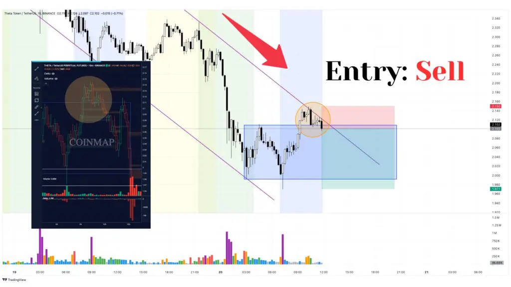Mình tìm điểm sell trong xu hướng trên và vị trí mình khoanh tròn màu cam là nơi mình sẽ giao dịch.